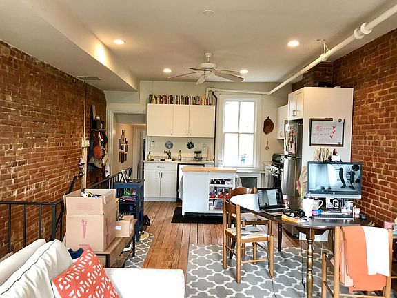 This charming 1 Bedroom + Den apartment is the upper in a 2-flat vintage row house, in the heart of Capitol Hill. It has approx. 800 square feet of living space with features including: * Large open-plan, loft-style living room/dining room/kitchen area. * Hallway off of main room leads to bathroom, den/office & bedroom. * Den/Office adjoins bedroom. It has 2 good-sized closets, and is great for extended living space or work-at-home setup. * Tall street facing windows with southern exposure. * Lots of light throughout. * Original hardwood floors in living/dining/kitchen area. * Carpet in hall, den and bedroom. * Exposed brick. * Original windows. * High ceilings. * Bosch washer & dryer. * Great updated kitchen with stainless appliances. Gas range with griddle; over-the-range microwave; refrigerator/freezer & dishwasher. * Central A/C and Radiator heat. * Ceiling fans in living space, bedroom and den for year-around comfort. * Secure and secluded rear patio with garden space, shared with downstairs apartment. Location, Location, Location... * Fabulous Capitol Hill Location. * Close to Eastern Market, Capitol South and Navy Yard Metro stations, House office buildings, LOC, Capitol, Navy Yard and other office buildings. * Walking distance to Nationals Park. * Quick and easy to reach the numerous restaurants, coffee shops, bars and shops along Barracks Row, Pennsylvania Ave and Eastern Market. * Grocery stores nearby include Whole Foods, Trader Joe's, Harris Teeter & Yes! Organic Market. * Parking is on-street. Residential parking permit required. Pets welcome on a case-by-case basis, with prior approval. There is a one-time pet fee. This is a very dog friendly neighborhood with a quick walk to Marion and Garfield Parks and a short drive to Congressional Cemetery Dog Park. Please call or email using the provided link to schedule a showing. Minimum 1 year lease. Longer lease terms welcome. Utilities are in addition to rent. Maximum 2 incomes to qualify. This is a non-smoking property.