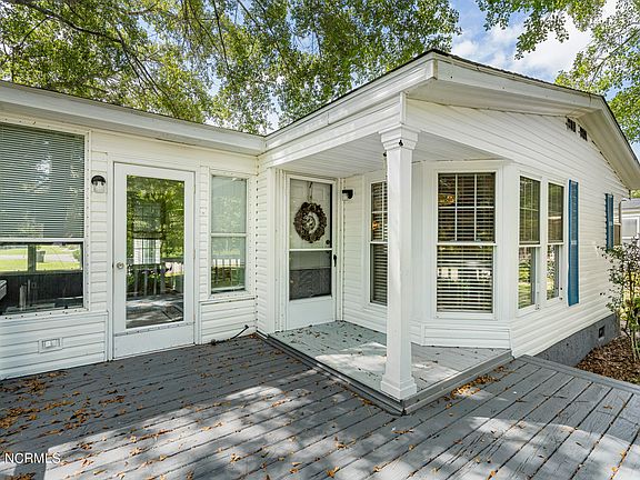 This home is nestled on a picturesque homesite on a quaint cul-de-sac in Topsail Greens. So serene full of shade trees and the sweet sound of chirping birds. Inside there is an abundance of natural lighting, where everywhere you look there is no shortage of windows. This is a great Kitchen for someone who enjoys a lot of prep room on this beautiful, tiled countertop. If you have a lot of stuff, there is plenty of storage for your favorite dishes, pots and put your bake wear in with ample cabinet space. The kitchen tiled backsplash adds a soft natural feel to its design. This breakfast area is a great place to start your day by overlooking the outdoors. You'll enjoy the very spacious living room where you are in the center of your home and a great place to entertain.. Gather with family and friends while enjoying your favorite meal in this dining area, or what a great place for a home office, especially with the built in cabinets. The oversized Primary suite is tucked in the back of this home to enjoy your privacy from. You can kick back & relax on the large, screened porch talking about the day's events, or sit out and grill on the deck. The Seller has maintained this home and early on they changed out to vinyl windows, removed the wall strips, replaced the heat pump. In the last few years, the roof and dishwasher have been replaced. They are leaving the washing machine (only a few months old), dryer which are located in a laundry room complete with cabinets and built in desk area, and they're even leaving the refrigerator! Move in, unpack and enjoy life. The HOA cuts your lawn leaving time to enjoy golfing, boating, a stroll on Topsail or Wrightsville beach, or shopping which is also nearby. Topsail Schools, UNCW, & historic downtown Wilmington, Camp LeJeune are a few things our area is well known for. Like to tinker? Then you will surely enjoy the spacious attached shed, and carport with oversized parking area. See ''more'' for additional information.