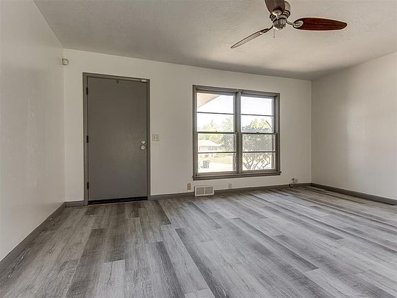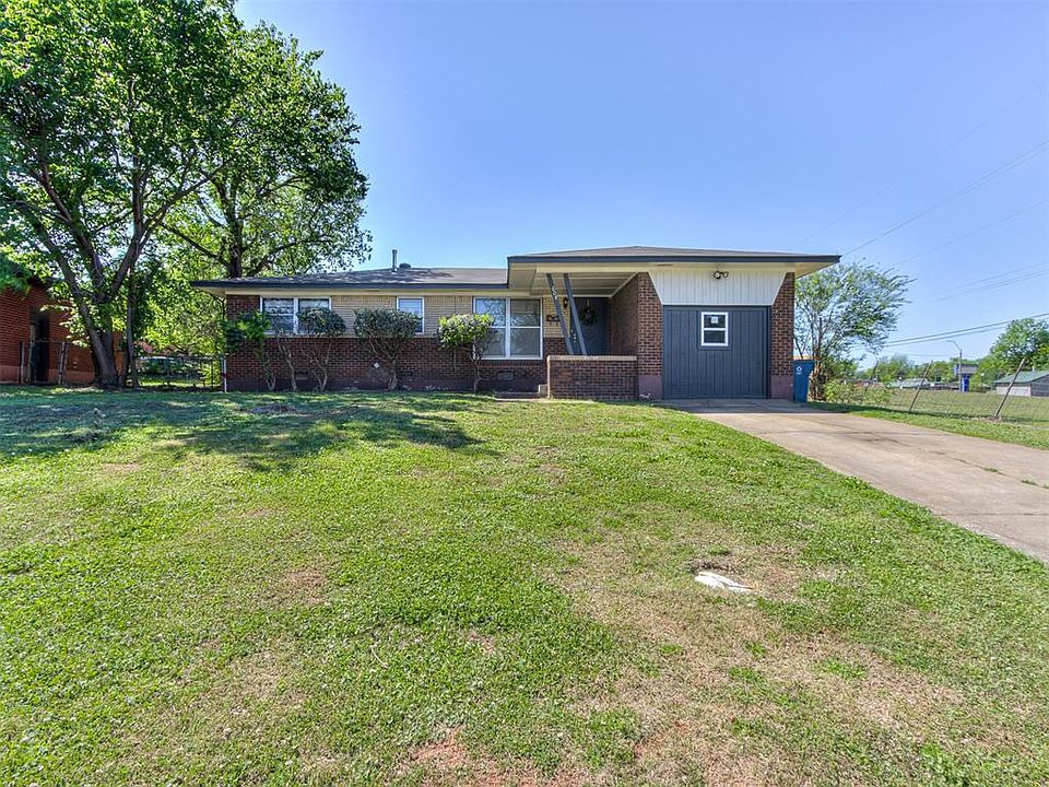 Welcome to this move in ready home located in the heart of Midwest City directly across the street from park. This home features 4 bedrooms, 1 bathroom, spacious dining and living room, fabulous back deck overlooking a great size backyard,so much room for activities, playset and so much more ! FRESH flooring throughout, interior paint, exterior paint and kitchen counter tops Squeaky clean .MODERATE PRICING. schedule your showing today FLEXIBLE FLOOR PLAN, INSIDE UTILITY AREA.