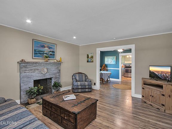 The backyard is a nature lovers paradise with newly planted fruit trees like Harvester & Redhaven Peaches, Northstar Cherry, Red June Plum, Granny Smith Apple, and blackberries, raspberries, grapes, Hardy Fig, and 3 kinds of blueberries, wow! The garage size is a rare find as it can be used for additional storage, workshop or studio. The home is being sold in its current condition and is ready for someone to put their special touches on it. Just a short drive to Knoxville, Oak Ridge and to numerous lakes and parks. Owner has never used fireplace. Buyer and or buyer's agent to verify all information.