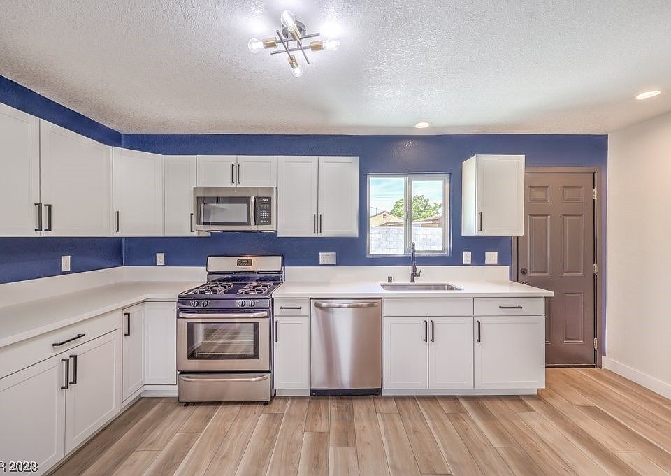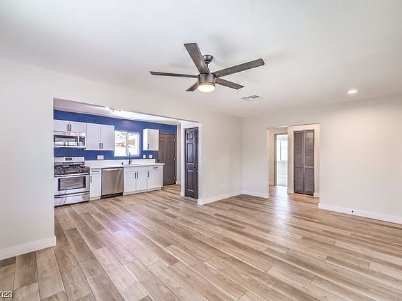 Newly remodeled, fully fenced, single-story home with 4-bedrooms, and spacious backyard. Quick access to interstate 15 and minutes from the entertainment, casinos, and shopping from downtown Las Vegas! Customary kitchen with upgraded white shaker cabinets, stainless-steel appliances, new countertops, and garden view. Bathrooms have been fully upgraded with high-end shower systems, modern tiled shower with niche, new vanities with framed mirrors, and lighting. The home has beautiful interior finishes, ceiling fans, painted accent walls, upgraded modern light fixtures, laminate wood flooring and plush carpet throughout!