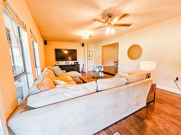 Hot tubTons of driveway parkingWood floorsTwo-car garageLarge covered patioSeparate officeFour bedrooms