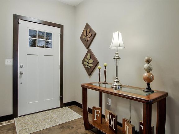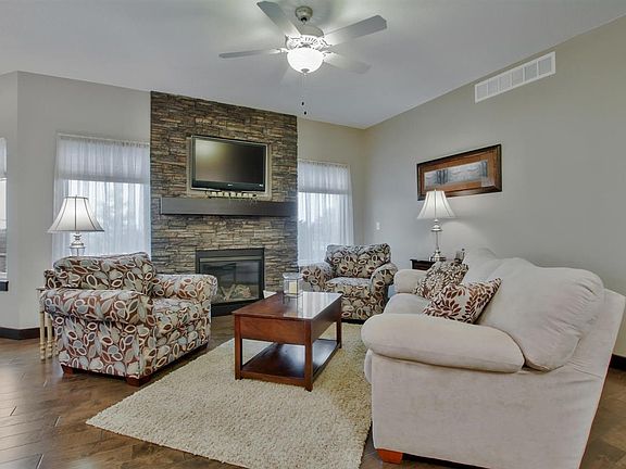 Sand Creek Station! The interior of this home is just beautiful. The dark wood work sets off a neutral gray palette. Split bedroom plan. The stone fireplace is a show stopper when you enter the front door. Open space for built in flat screen. Hardwood flooring. Kitchen is a dream! Eating bar, walk in pantry, stainless appliances, hard surface counter tops, soft close drawers and pull outs. Master suite with two closets, one large walk in, double sinks and an over-sized shower. Basement family room is great for entertaining. Nice over-sized patio out back. The yard is perfect and includes sprinkler system and well. Spacious garage with insulated doors and ceilings. Security system. Enjoy the neighborhood swimming pool and the easy access to highway, shopping and local YMCA.