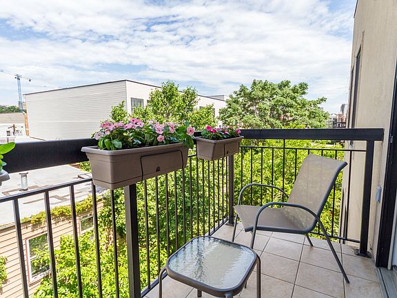 Welcome Home! Beautiful 1701 SqFt 3 bedroom 2 bath with private balcony and deeded garage parking. Open kitchen concept with large center island, granite counter tops with breakfast bar, custom cabinets, tiled back splash, stainless steel appliances, wine refrigerator, pantry and pendant lighting. Great for entertaining, this over sized living room/dining room features maple hardwood floors throughout, custom surround sound leading to your private balcony with gorgeous sunset views. Master bedroom suite showcases a spacious layout with ceiling fan/light, his & her closets(walk in), inviting spa like master bath with double vanity, granite counter tops, Kohler fixtures, linen closet & frame less glass shower which features a Kohler DTV Prompt Luxury Shower System with digital valve, body sprays & hand held multi-function shower head. Other features include: Over sized 2nd and 3rd Bedrooms with ceiling fans/lights, Closet Factory designer closets throughout, central air, full size washer/dryer, guest bath with 6 foot soaking tub/shower & designer coat closet. Built in 2009, this professionally managed 8 unit elevator building offers security cameras, garage parking and a large common landscaped backyard with patio table, chairs and grill. Great midtown location just steps to restaurants, shops, NYC transportation and just a few blocks to Columbus Park