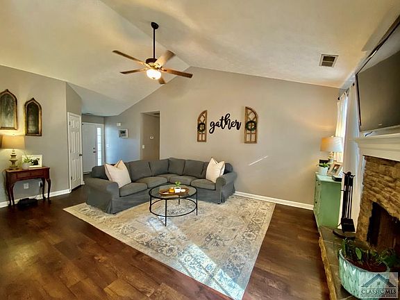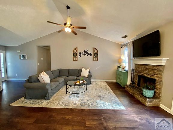 Beautiful home with 3 bedroom, 2 bath in Winder. The foyer area opens to the great room with vaulted ceiling and wood burning fireplace. Kitchen has a breakfast bar, pantry, a breakfast area, and stainless steel appliances. Owner's suite with trey ceiling has a walk-in closet, double vanity, garden tub and separate shower. Cul-de-sac lot with a wooded, fenced backyard and patio. Easy access to Highway 53 and I-85, and easy access to schools, hospital and grocery stores. Home shows very well. Schedule your appointment today.