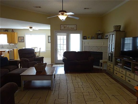 Extremely clean & MOVE IN READY!!! Great split floor plan. Beautiful wood laminate floors all areas except kitchen, baths & utility room. Family room w/corner fireplace opens to eat-in kitchen w/island. Master has nice sized bedroom, large master bath with wrap around closet. Extended patio for enjoying backyard barbecues. 8x10 outbuilding, extended driveway.