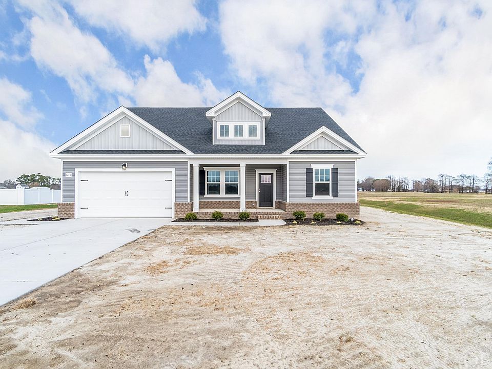 Discover a brand-new, five-bedroom home nestled in a picturesque waterfront neighborhood. As you approach, a charming covered front porch extends a warm and inviting welcome. Step through the foyer to the heart of this home, where a seamless design melds the kitchen and great room into a harmonious living space. The kitchen is equipped with stainless steel appliances, a spacious island, and abundant cabinet space. Adjacent to this is a versatile formal dining room that could easily serve as an office space. The thoughtfully designed split floor plan ensures privacy and comfort for all. On one side of the home, you'll find the primary suite, which features a trey ceiling, an en suite bathroom complete with a tiled walk-in shower, and a generously sized walk-in closet. On the opposite side, two spacious guest bedrooms provide ample accommodation. Don't overlook the additional two bedrooms, a full bath, and a versatile loft area found upstairs, offering even more space to tailor to your needs. For added convenience, a mud room awaits as you enter from the garage, helping you keep things organized and tidy. This community offers a boat ramp with deep water access, providing direct navigation to the picturesque Pasquotank River.