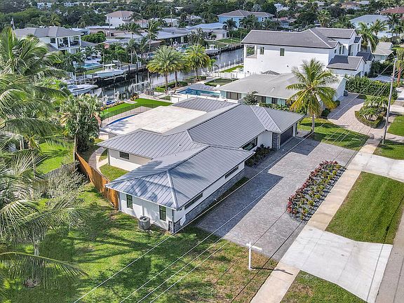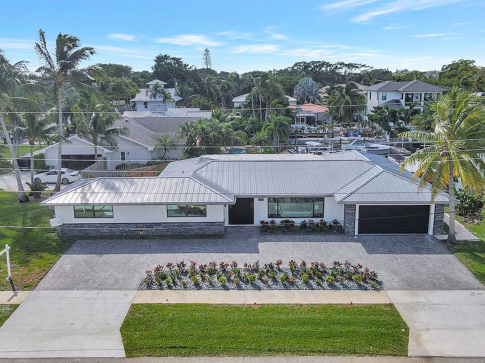 NEW, NEW! Take a look into this Waterfront Ranch perched upon some of North Palm Beaches luxurious, sought after deep water canals. This sprawling single story experienced an extensive top to bottom remodel including all necessities, brand new metal roof, plumbing, electrical, pool and travertine deck, complete impact windows & doors and much more! Immerse yourself in the luxurious and warm design, including wide-plank beige tile flooring illuminated by beautiful recessed lighting throughout. Walk throughout the open floorplan design and find yourself in the open concept living & kitchen, with stainless appliances encapsulated by an impressive waterfall island. The unique floorplan pairs each bedroom with updated bathrooms, cutting edge vanities well lit by custom mirrors. Bring your bags. and start enjoying what Florida is all about!