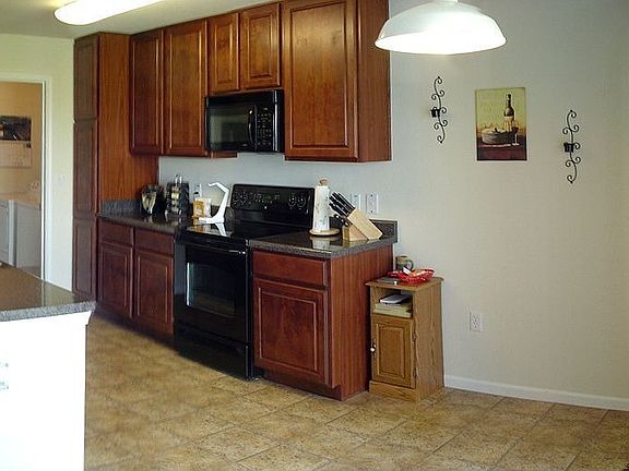 Almost new construction in rich & inviting colors. EIK ftrs blk appls, upgraded cherry cabinets that adjoins the dining rm. Lvng rm ftrs cathedral ceilings with a spacious feel. Master bdrm can accomodate a king bed w/its space, has WIC and private bath. 2nd bdrm utilizes the full bath in hall, currently used as n office. Less than 6 mos old and has a lot of upgrades! Blinds pkg, sodded front & back yard, and more. No bkyrd neighbors. Heat pump intsalled for extra efficiency