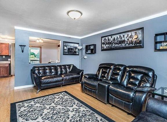 Very nice 4 bedroom 2.5 bath home with a walk out basement close to Hwy 370. This home has an oversized 2 car garage with unique lighting, a large fenced yard backing to open ground and lots of trees. Entertaining is a must with this open floor plan. Greet your guests on your covered porch and enter into the large newly painted living room with easy care flooring which flows thru the kitchen and hallway. The eat in kitchen has plenty of natural light, counter space, custom upgraded cabinets and the Kitchen appliances can stay. The kitchen slider opens to a large deck. All three main level bedrooms are large and the master has a private half bath. The walk out basement includes a large rec room, bedroom, full bath, lots of storage and the laundry area. Relax and enjoy your private back yard either on your deck or patio with fire pit. This home has a newer roof, upgraded light fixtures and crown molding. Come see this gem for yourself! Move in ready and waiting for you. APPT thru MLS