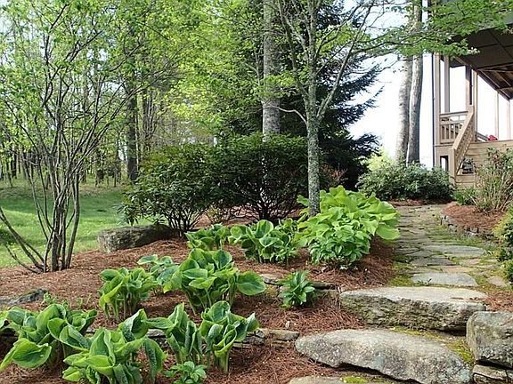 Exceptional VIEW, LOCATION & FLOORPLAN in a 3/3.5 Stand-alone Townhouse creates a magnificent mountain home. Perched above the third tee boxes on the award-winning Trillium Links golf course, the year-round panoramic view of the mountains and fairways is central to the design theme of this "post and beam" inspired house. Expansive wrap around decks on two levels provide enviable entertainment and lounging spaces to enhance the thoughtfully laid out interior. Nice interior touches like exposed pegs in beams, granite counters, big windows, window seat and alcove, large stone wood burning fireplace, and even a convenient wet bar in the family room. Easy access via Links Drive plus walking distance to the Clubhouse and pool complex. Your Ownership/Membership will include generational privileges and all amenities from the Trillium private links and lake community, including deeded lake access.