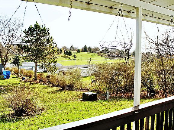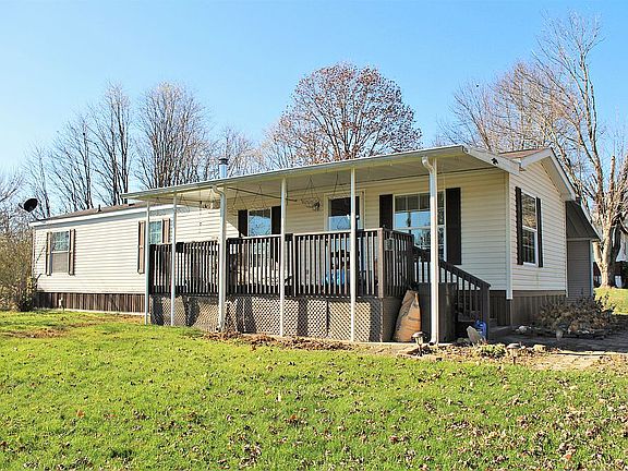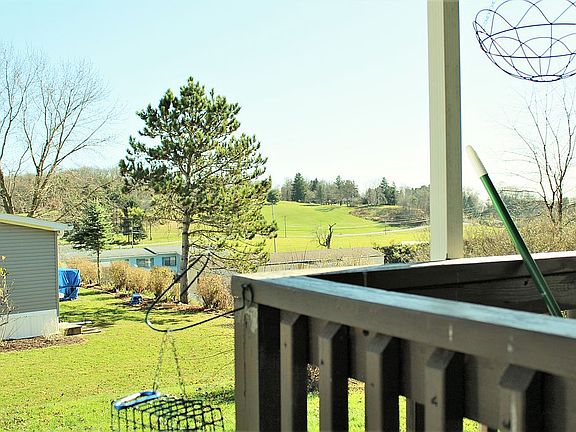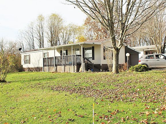 A mobile home with a car port enclosed on three sides so no worries about snow or rain. Also an 8x10 shed in the rear. Whole house ac, hardwood floors, large deck in front and porch in the rear.two screen doors, blinds on all windows and a cathedral ceiling. Wood burning stove for great warmth in winter.