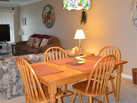 WOW! The owner has made this home perfect! Absolutely charming 2 bedroom, 2 bath condo with 1-car garage features updated kitchen with beautiful tile backsplash, new carpeting, updated flooring, newer heat pump and laundry room with built-in cabinetry. The rear deck, accessed thru the master bedroom with master bath, offers a secluded setting backing up to trees. Association fees cover lawn maintenance and snow removal.