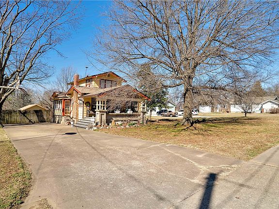 Unique offering! Historic Craftsman Home built in 1924, very well cared for and pridefully maintained. Original solid wood flooring, windows and solid oak trim. large inviting covered front porch as well as screened in back porch overlooking private surrounding oversized 0.6 acre lot with private gate access to the Razorback Greenway Trail and Spring Creek (west property boundary is the center of the creek). Short walking distance to revitalized downtown Springdale. Full unfinished walk-out basement 568 Sq Ft accessible from inside the home.