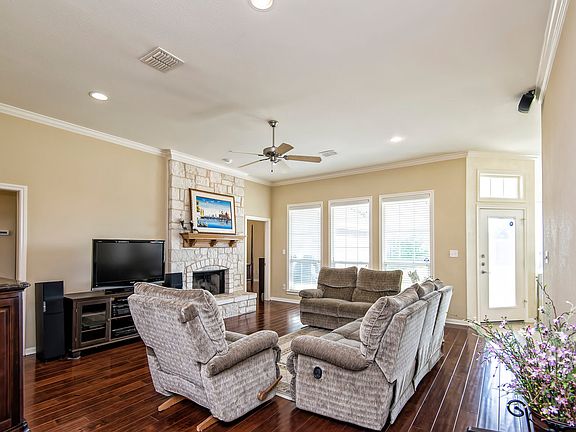 Don't miss out on this beautiful Chapman Farm home! Wood flooring and crown molding throughout. Living room has wood burning fireplace with gas plumbing, tall ceilings, lots of natural light and is open to the kitchen. The kitchen features tile floors and back splash, granite counter tops, an island and stainless steel appliances. A built in desk off the kitchen would be perfect for homework. A large master has its own patio door, separate whirlpool tub and shower and dual vanities. Midway ISD!