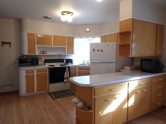 Nice 2 Bedroom, 2+ bath ranch style home with an enclosed Breezeway & attached single car garage. Full Bath w/no shower, bedrooms & hallway have original hardwood flrs, spacious Living room & a great kitchen/dining area. Main Flr Utility, Front & back deck, large back yard, alley access & a utility shed. Basement is unfinished with an older 3/4 bath, has great finish potential. Masonite Siding