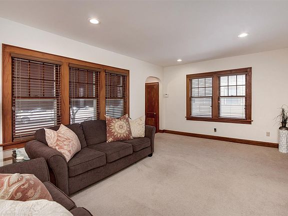 This home is move in ready with tons of character inside and out! Considered a bungalow with a "catslide" roof, the exterior of the home is brick and has maintenance free siding. Charming front porch as well as a cozy side porch, then a large flagstone patio in the fenced east facing backyard. Oversized one car garage in excellent condition! Entering in to the home, you will find a large living room with lots of windows providing tons of light. Large formal dining room. Updated kitchen with white cabinets, laminate countertops, and subway tile backsplash. Built in spice cabinet. Dining room/ alcove off the kitchen or additional space to enlarge the kitchen area, add a pantry, or even to move the laundry space to the main floor. Main floor master suite conveniently located next to the bathroom. Second floor features an oversized bedroom with wood flooring, tons of windows for natural light, and a California closet set up for nice storage. Off the back of the house is a nice bonus room including built in bookshelves with hidden storage space behind the bookshelf (tv and tv mount will remain with the home). This home is neutral throughout and has been very well maintained. The owner has updated lighting/ fans, added recessed lighting, and much of the home has newer vinyl windows. The front and back door have newer storm doors. The roof and sewer line were both replaced in 2016. Special note: there are two iris patches that were planted when the house was built 95 years ago that bloom every year and are gorgeous when in bloom! This won't will not last long, show & sell today!!!!!