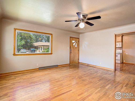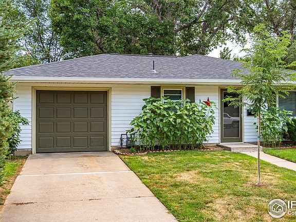 Cutie of a ranch style home on the West Side of Downtown Loveland! Enjoy sparkling hardwood floors throughout, updated kitchen w/ Knotty Hickory Cabinets, all appliances included, newer vinyl windows, newer A/C, furnace, & water heater, nice size closets, heated garage, & more! The private & shady backyard is fully fenced and has a big covered patio, lush lawn, flowers, shed, & sprinkler system. A perfect location on a quiet street just minutes from downtown, Lake Loveland, River's Edge, West Side Park, & Loveland's recreation trail. No HOA, no Metro District. Make this West Side Gem yours TODAY!