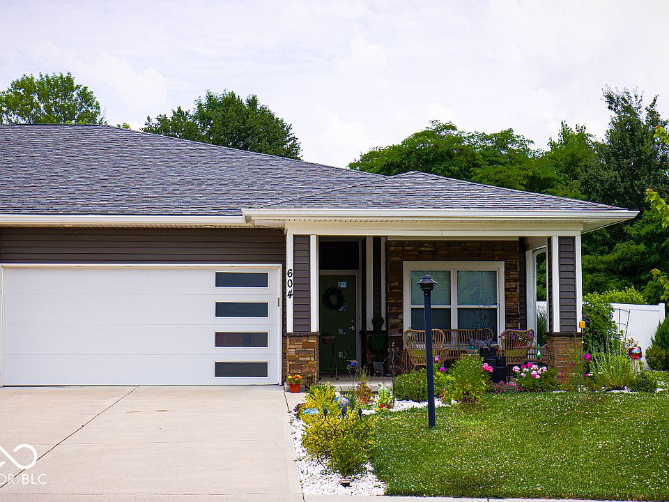 Pending, Open House Cancelled! Welcome to this stunning custom-built contemporary prairie style masterpiece nestled in the heart of Trafalgar. This exquisite paired home boasts an array of high-end upgrades, ensuring both style and comfort in every corner. Step inside and be greeted by the sophisticated charm of 5" baseboards and 9-foot ceilings, accentuated by recessed lighting and waterproof luxury vinyl flooring throughout. The open concept floor plan is perfect for modern living, effortlessly blending the spacious great room with the kitchen and dining areas. The gourmet kitchen is a chef's delight, featuring 36" cabinets, a large island with granite countertops and built in range/cooktop. Featuring high end stainless steel appliances. The primary suite offers a luxurious retreat with double sinks, a custom-tiled shower, granite counters and a generous walk-in closet. Designed with quality in mind, the home includes Tyvek sealed barrier house wrap system, Handi Plank siding, and Versetta stone exterior with 24-inch overhangs. Enjoy outdoor living year-round on the expansive covered front and back porches, overlooking a large backyard with maintenance-free vinyl fencing and beautiful mature landscaping. Don't miss the chance to fall in love with this impeccable home in Trafalgar. Schedule your tour today and experience the perfect blend of contemporary design and luxurious comfort!