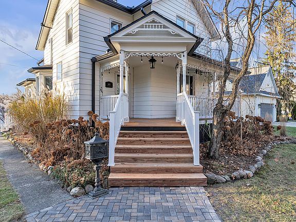 Here is your chance to own a 1901 Victorian in Howell's highly sought after downtown area. This home features gorgeous HW flooring & original trim throughout. The main floor offers a bedroom w/attached powder room, full bath w/claw foot tub, wood burning stove, laundry room, pantry & updated kitchen complete w/stylish quartz counters. The upstairs boasts 3 bedrooms, office & completely renovated full bath w/subway tile & huge stand-up shower. Basement walks out to fully fenced backyard w/stamped concrete patio. Exterior features 2 covered porches w/maintenance free decking & 1-car detached garage. Brand new roof, walkway & front porch steps in 2025. Exterior paint & gutters w/guards in 2023. New water softener - 2022, HWH - 2021 & boiler/radiators & whole house water filtration system - 2019. Antique upright piano included! Quiet corner lot w/mature trees. Walk to downtown restaurants, shopping, farmer's market, festivals & city park. This is one you do not want to miss! Welcome Home!