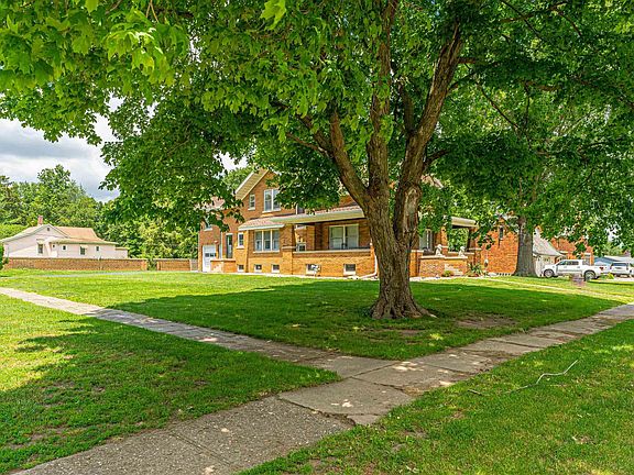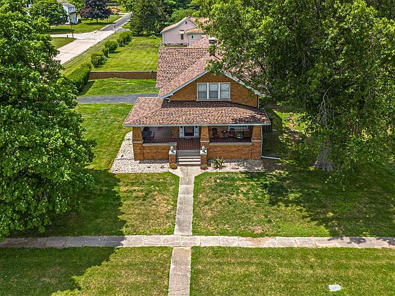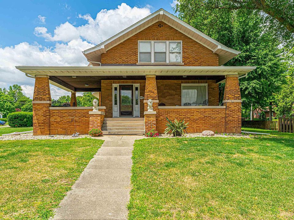 Over 3,000 square feet of living space showcased by gleaming hardwood flooring, natural woodwork, crown molding, and pocket doors awaits you and yours with this showstopping ALL BRICK 4 bedroom, 3 full bath two story showplace home situated on a sprawling 120X145 corner lot! The main floor of home is host to a gracious front facing living room with ample natural light as well as an open staircase, formal dining room which flows perfectly in to a trendy fully equipped white kitchen with tile flooring/countertops as well as a breakfast bar, cozy family room with elegant built-ins, neat window seat area, and a center fireplace, in addition to a full hall tiled bath. Travel upstairs via the front or rear staircase and you will find four nice sized bedrooms, convenient laundry facilities, and two full baths. All bedrooms boast hardwood flooring and great closet space. One full bath can be found off of the main bedroom hallway while the other can be found adjacent to the rear primary suite. Primary suite also features a great walk-in closet. This enchanting small town property also features an 1,800+ square foot full usable basement, amazing covered wrap around front porch, two car attached side facing garage, efficient hot water heat paired with two central air conditioning units, charming interior glass doorknobs, and various recent updates within the last six years including roof, soffit, fascia, gutters, electrical, boiler, and all appliances (including washer and dryer). WOW!