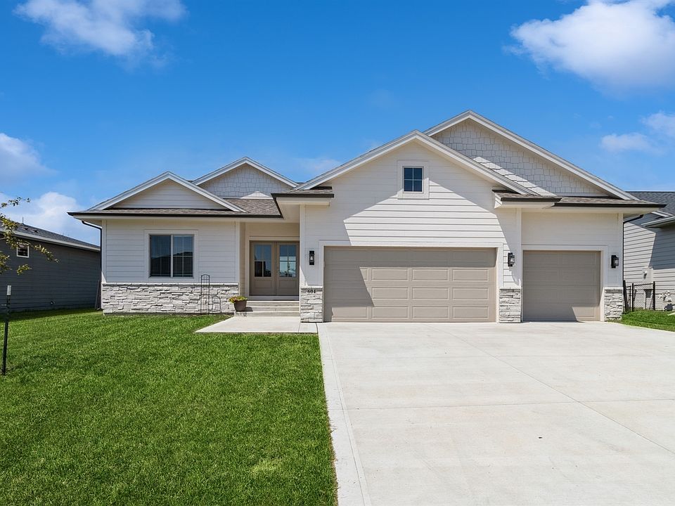 This beautiful 4 bedroom/3 bath ranch home is perfectly located within steps of Heritage Elementary! The charming double-door entry leads into a spacious foyer and an open floor plan. The main level boasts two bedrooms, the master suite features a tiled shower, dual vanities, and an impressive walk in closet. You'll love the LVP flooring throughout most of the main level, complemented by a bright kitchen with white cabinetry, soft-close dovetail drawers, and a large pantry. The dining area opens to a covered deck, perfect for enjoying views of the fully fenced backyard. The finished basement is complete with a spacious great room, wet bar, two additional bedrooms, and a full bath. Additional highlights include a 3-car garage, and a full irrigation system. Don't miss your chance to make it yours! Tenant is responsible for all utilities, lawn and snow removal. Property is non smoking Pets ok, with owner approval.
