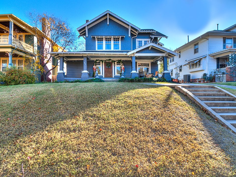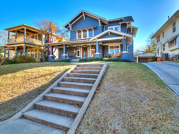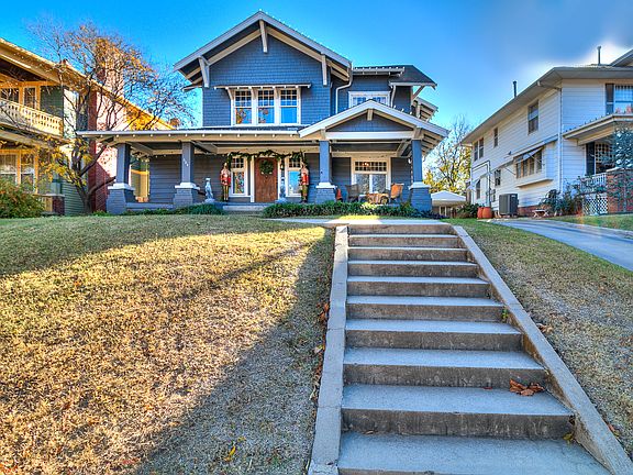 4 bed, 2 bath, 2730 sq/ft. Craftsman home in Mesta Park, built in 1922. Fresh paint inside and out and many recent updates, with lots of historic charm and many original features retained. Beautiful 1920s woodwork, crown molding, and hardwood floors, as well as working pocket doors, farmhouse kitchen sink, clawfoot tub, and cast iron bathroom sink. First floor includes kitchen, living room, piano room, enclosed side porch/sitting room, gorgeous sunroom, full bath, and large dining room. Saddleback stairs lead to the second floor, which has all 4 bedrooms (2 with hardwood,) plus full bathroom, playroom, and large laundry room with sink. Home has a basement with room for storage. All appliances stay with the home, including refrigerator, range, dishwasher, microwave, and washer/dryer. 2-car garage with additional refrigerator and washer/dryer that stay with the house, as well. Backyard has deck and pergola, and front porch has swing and sitting area. New furnace and AC unit (both in 2016.) Square footage doesn't include amazing garage apartment in back of house, built in 2005: Living room, kitchen, 1 full bath, and spiral staircase up to loft bedroom. This home is a half block away from the neighborhood park, has a large attic space, many windows that allow in natural light, and lots of cozy nooks. It's the quintessential Mesta Park home, with interesting architectural details and tons of character. 5-minute drive to downtown, and walkable to Midtown and Uptown. Call Jordan to schedule an appointment to view this amazing home 405-615-5623