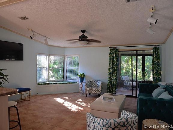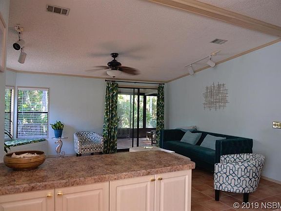 This gorgeous 2 bedroom, 2 bath home is a slice of tropical paradise. You feel it as soon as you walk in. Presenting nicely with new HVAC, new duct work, and updated appliances. Roof is less than 5 years old. Both bathrooms have been updated to include new sinks, new water closets, and fresh new wall coverings. A beautiful and large enclosed Florida Room really showcases the natural greenery around the property. The yard has a wood deck and sprinkler system as well. The location of this property also has the convenience factor, as the walkway to the Heated Pool and Tennis Courts are nearby. Additionally, the boat launch is located on the same street. Edgewater Landing is an award winning ACTIVE COMMUNITY. Bonuses include that you may store a boat or RV (when there is room) at no charge. The HOA includes Spectrum cable, Wifi, and Internet. Amenities also include a fitness room, pool tables, screened in hot tub, access to the Intracoastal fishing pier, dance floor, bingo, and ceramics classes. Live where you play.