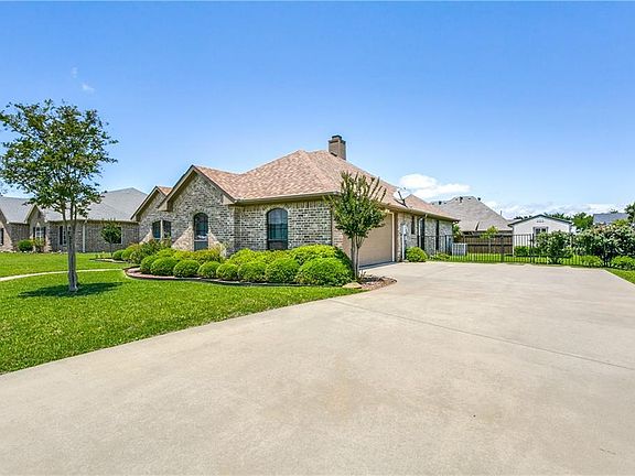 Located in the heart of Pilot Point, and approximately 25 minutes from Frisco area, and about an hour to airport. Close to schools and square.Home has a large living area and gas log Fireplace. Wheelchair accessible oversized doors. Granite Island kitchen with eat in breakfast area, large enough for a 6 chair dining table. 42 inch Cabinets with plenty of countertop. Kitchen sink over looks into the backyard. Split bedrooms. Master bath with his and her closets and vanities. Separate Standing shower with sitting bench & jacuzzi garden tub. Extra electrical outlets in & out of home. Side entry garage with extra storage space. Storage shed with concrete slab does stays. Home has great curb appeal & landscaped.
