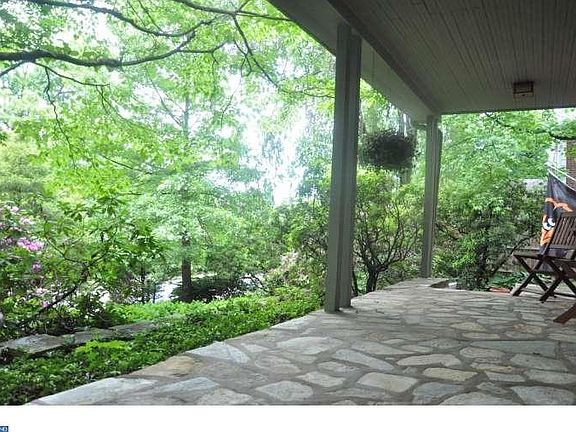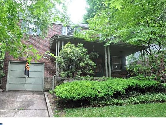 Brick colonial with large, architect designed great room with warming wood stove and cathedral ceiling, wide plank wood floor, sliding glass doors and wall of windows overlooking flagstone patio and beautiful landscaped, private backyard. Oak h/w flooring, crown moulding, fireplace in open living room dining room area. New upstairs bath with bubble soaker tub, plenty of storage in upstairs bedrooms. Large eat in kitchen with pocket doors to family room, tile flooring, sliding doors to small covered deck and back yard. Finished, dry basement with laundry area, built in storage and large "bonus" room. Lovely covered, flagstone front porch. A/C, one car garage, tankless, on demand water heater, full attic, all appliances included, garden shed, two raised garden beds in upper yard. Two full bathrooms. Close to Route 309, Chestnut Hill, Springfield Twp schools and four SEPTA train lines. Lovingly maintained home with warm, homey feel.