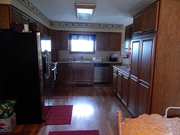 This backyard gives you a secluded feeling on 2.3 acres in beautiful Bear Creek Development. The home was built in 1971 with 3 BR and 2 BA on the main floor and 2 car garage attached. The kitchen has been remodeled with oak cabinets with a nice pantry, laminate flooring and stainless steel appliances. There are two wood-burning fireplaces...one in the living room and one in the basement family room. Sellers will also leave the big screen TV in the family room which has surround shelving. There is tons of storage and awesome shelving in the basement also. The double front doors have been replaced along with patio door in the walk out basement. The roof was shingled in 2014 along with new gutters. There has been a radon mitigation installed. Heat pump installed about 14-15 years ago and has propane backup furnace. Propane tank is rented thru Farmers Coop. Water softener is owned. Sewer system between house and street was maintained 2014.