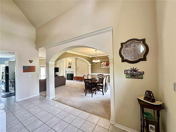 Welcome to a home that blends generous square footage with timeless style in an established, whisper-quiet neighborhood. A three-car garage introduces the property, leading into an oversized living room that flows effortlessly into an equally expansive dining area—an entertainer’s dream anchored by rich natural light. Just beyond, the chef’s kitchen gleams with granite counters, a crisp tile backsplash, and stainless steel appliances that make every meal feel special. Step outside to a large backyard ready for barbecues, play sets, or garden beds. Back inside, the primary suite stuns with dramatic tray ceilings and a private covered deck perfect for sunrise coffee or sunset unwinding, while the spa-inspired bath impresses with vaulted ceilings, double vanity, dedicated makeup counter, walk-in closet, luxurious jetted tub, and separate shower. The finished basement invites endless possibilities, offering a sprawling family room complete with wet bar for game days, movie nights, or casual gatherings. Carpeting on both levels shows its age and is priced for replacement, giving you the freedom to select fresh flooring that matches your vision. Spacious living, abundant parking, and a yard built for memories—this home is ready for your personal touch.