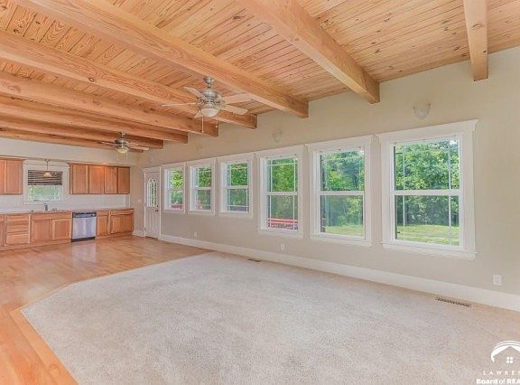 Custom built 2 story w/4 large bedrooms, 2.5 baths, very open floor plan that pours in natural light everywhere, wood floors & some carpet enhance the warm feeling that this house enjoys, unique wood ceilings are a special plus, large deck looks out on a lovely view, there is a partial crawl space,a place to go during a storm, . Fresh paint throughout.