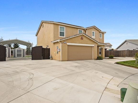 Why wait for new construction when this stunning 2017 home on a spacious cul-de-sac lot is ready for you? Situated on over 12,000 square feet, this property boasts incredible curb appeal, a large RV space with a covered carport, two Tuff sheds, and extensive concrete work. Inside, you'll be greeted by numerous upgrades, including wood-look tile flooring, custom light fixtures, elegant woodwork, and plenty of living space. The home offers two living areas, with one seamlessly connected to a fantastic kitchen complete with a center island, quartz countertops, subway tile backsplash, stainless steel appliances, and a pantry. Upstairs, you'll find 4 bedrooms, 2 bathrooms, a utility room, and a spacious loft. Perfect for entertaining, the backyard features a full-length covered patio, a gorgeous pebble-tech pool with water features (built in 2019), a gazebo, pergola, and low-maintenance landscaping. Don't miss your chance to see this exceptional homeschedule a visit today!
