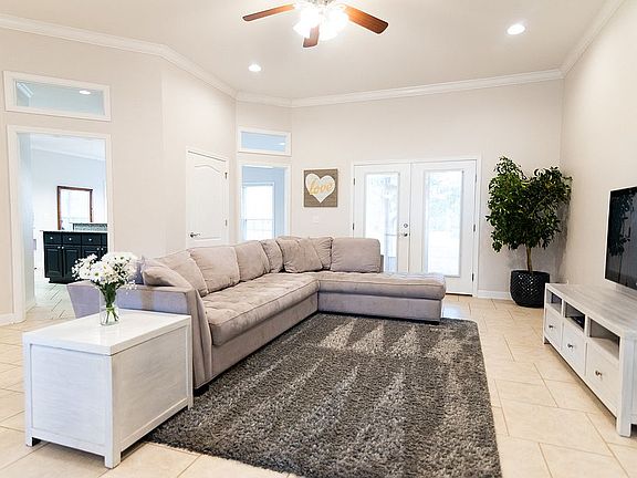 Perfect Location on the 5th hole at Cotton Creek Course at Craft Farms. This home has been meticulously maintained and is ready for its new owners. Enjoy the spacious layout with the open living and dining room while taking in the serene views of the golf course, Oak trees, and saw grass. The large kitchen features granite countertops and newly painted cabinetry along with a new refrigerator, range, and microwave. The HVAC system was installed in May 2017 and is still under warranty. Unwind in this quiet cul-de-sac lot with a wide back yard that backs right up to the golf course. The master suite has everything you need with double vanities, a jetted tub, and 2 walk-in closets. The master suite also opens to the screened-in back porch perfect of enjoying the beautiful Gulf Coast weather. You will appreciate the full-size laundry room and the washer and dryer are negotiable. Other fantastic upgrades include voice-controlled lights and thermostat along with garage floor being recently epoxed and sealed. HOA Fees include lawn maintenance, shrubs, pine straw, and irrigation system. Craft Farms is a wonderful neighborhood featuring an award-winning golf course, beautiful ponds, plenty of sidewalks, resident ducks and geese and is in close proximity to EVERYTHING. Call for a private showing today!