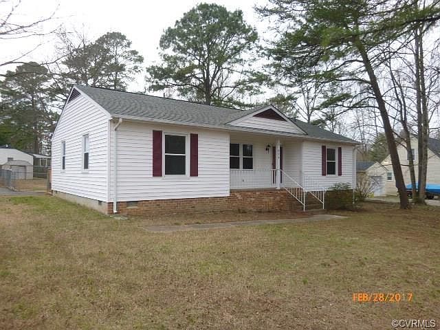 Recently renovated vinyl-clad Rancher in the White Oak area of Henrico County Va. All new flooring, paint & appliances. This home has a lot of value with its Living Room , Family Room, Paved Driveway, rear Deck and front porch and what's particularly nice about this home is there is the Master Bedroom on one side of the home and the other two bedrooms are on the other side. Large Yards like this on a corner lot are becoming hard to come by and not only that, this is a fabulous neighborhood to boot ! C'mon and see for yourself.