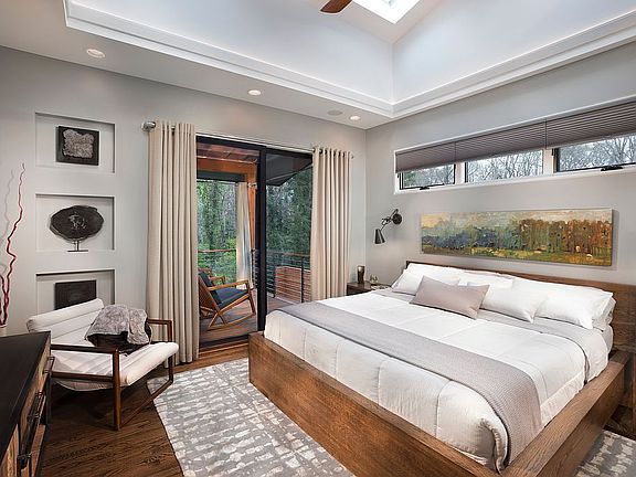 You have to see Black Mountain's hottest house! This Mountain contemporary home has won multiple awards including Best Green Renovation in the country by NAHB, Asheville Parade of Homes and Viewer's Choice awards, and has gone viral on social media dozens of times for the most incredible "before" and "after". Built by Asheville's top Design+Build firm, Living Stone Design+Build, and ID.ology Interiors & Design. This near Net Zero has 3 bedrooms and 3 full baths, fully renovated and an addition added in 2016. This home has solar panels, geothermal HVAC, home theatre and whole house audio. The square footage after renovation/addition is 2,302 heated square feet/2,900 total under roof with additional uncovered outdoor living areas. Perfect for a primary home, second home, or VRBO, this home is conveniently located with an easy walk to downtown, Lake Tomahawk, pool, tennis, and Black Mountains well known golf course. Just a mere 15 minute drive to downtown Asheville. Pretty lot on quiet street in desirable Methodist Colony. Private fenced back yard and patio and off-street parking. The home includes upper and lower driveways, a single car garage, large owners storage closet, wine cellar, art studio/home gym and a safe room. Expansive outdoor living both covered and uncovered. Fire pit. Finishes and features include beautiful interior stone and marble countertops, a two-sided gas fireplace, Incredible suspended beams hung from the 17' high great room ceiling. One of the secondary bedrooms has an adorable kid's loft with ladder access, as well as built-in desk space. The Master Suite boasts a gorgeous "sky tray" with programmable skylights, private covered deck, heated floor in the master bath as well as a freestanding jetted tub and walk-in shower. Marble countertops throughout. Available furnished - with the majority of the furnishings and household items in the home - are available for purchase at additional cost, up for negotiation. *Cellar door does not convey*