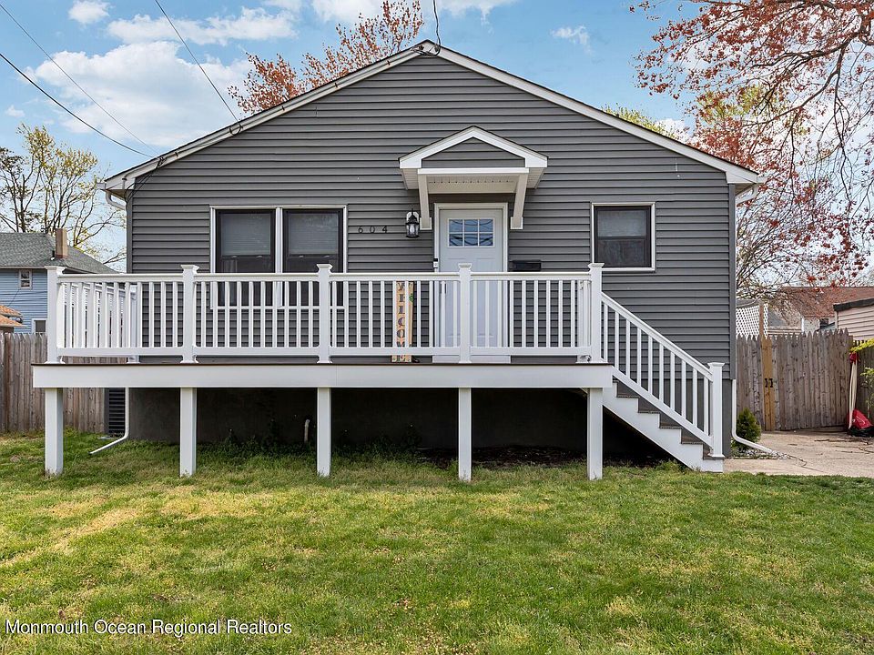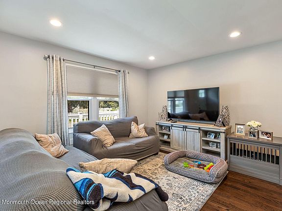 Newly Renovated + Conveniently located close to Bradley Beach NYC transportation, shopping, restaurants and the beach, this 3 bedroom, 2 full bathroom home is complete. This open floor plan ranch offers: newer kitchen + bathrooms, quartz, stainless steel appliances + hardwood floors throughout. 2020 roof, HVAC system, Hot Water Heater, Central Air, Windows, Porch + Trex Deck. Detached Garage and Basement with 9 foot ceilings