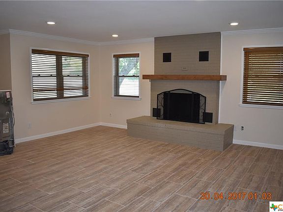 REDUCED, REDUCED. ADDED CONCRETE TURN AROUND FOR PARKING AT GARAGE AREA. Great open floor plan new tile, paint, counter tops. Come and enjoy the spacious flow of this ready to move in home. Convenient location, beautiful tree shaded corner lot with small chain fenced area at west side of home. Woodburning fireplace in the living area. Office, sewing room, coat room at the rear entry near the garage and utility area plus a .5 bath. Great family home with access to a private Guadalupe River park area for less than $50/year. Call to set up your appointment today.