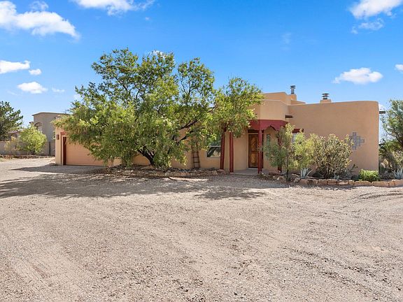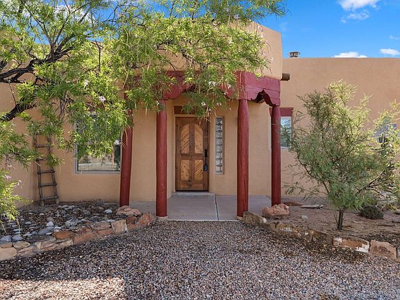 Come see this beautiful southwest style custom home situated on a .52 acre lot with breathtaking views of the Sandia Mountains! A Great room, enhanced with a kiva style fireplace/pellet stove insert, Raised tongue & grove ceilings with Viga beams, sliding door opens to the porch with beams, ceiling fan and stunning views! The kitchen offers a gas oven, granite tile counter tops, custom cabinetry, breakfast bar & breakfast nook with built in seating and custom table! Separate master suite with views & gas log fireplace. Master bathroom features jetted tub, separate shower, double sinks & walk-in closet! Other highlights include: new exterior doors and windows, newer carpet, tile floors & oversize garage with workshop. Don't miss it!