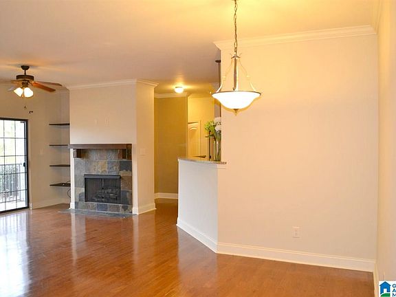 What a well kept secret! Financing fell through. A small gated community that affords access to Hoover's premier schools for under $140,000!! 3 BR/2 BA condo features all the benefits of no exterior maintenance responsibilities, with the added benefit of large green spaces just steps from your door, with wooded area beyond that. There is parking on the side that allows you to enter the unit without going up or down a single step! And the HOA takes its role seriously. Everything is in tip-top shape. Split BR plan. Engineered wood floors, open floor plan, fireplace, modern kitchen with pantry, granite counter tops, breakfast bar, solid surface range, dual stainless sinks, and ample cabinetry. There is a nook prefect for a bookcase or desk, 9 ft ceilings, crown molding, natural light, sun-kissed rooms and roomy laundry room. Sliding doors to the patio. Fabulous clubhouse and fitness center filled with equipment for Homeowners' use. The community pool is large with lots of seating.