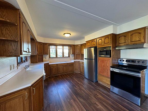 Raised ranch home on a large corner lot. 4 bedrooms, 2 bathrooms and an attached 2 car garage. Spacious living room with bay window to enjoy the views. Open kitchen and dining room with built in hutch. Patio door leads to a two level deck that overlooks the back yard. Lower level has 2 bedrooms, 1 bathroom, rec room and laundry room.