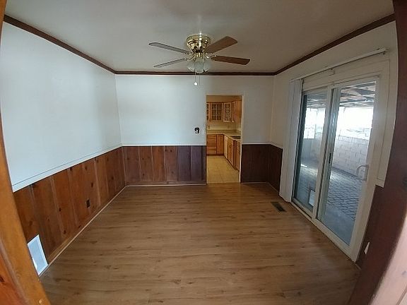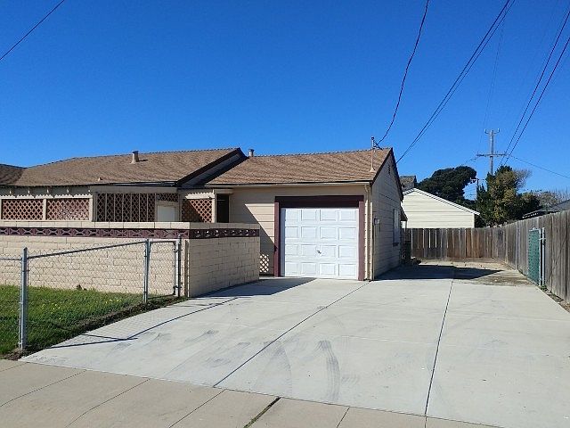 This single family residence consists of three bedrooms, one bath, one car garage, patio area, kitchen, living room, bedrooms with hardwood floors, half bath in garage.