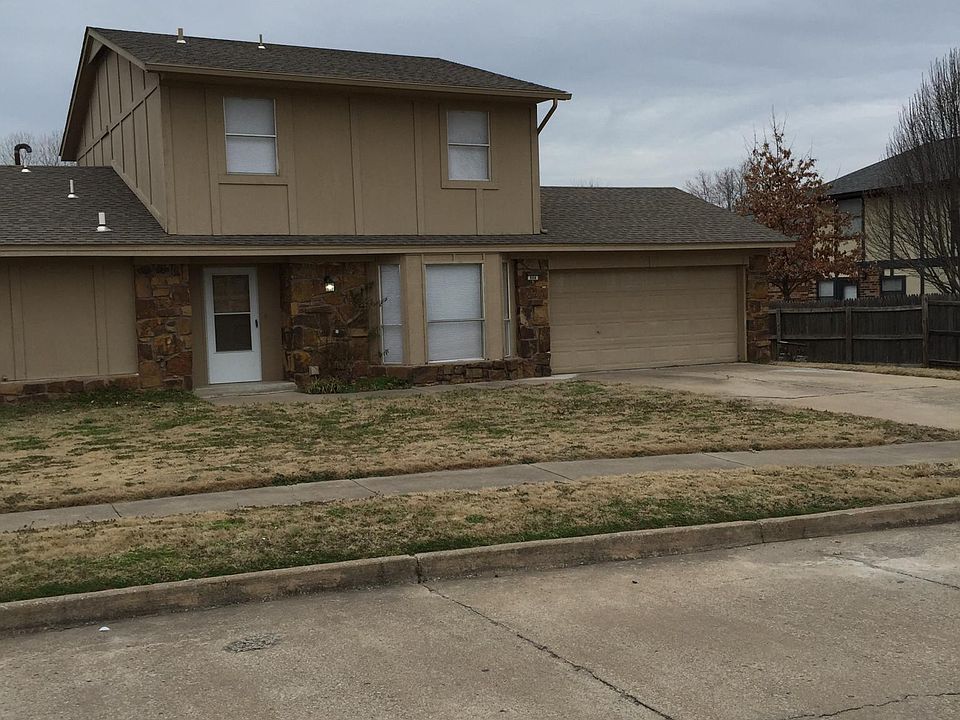 3 bedroom, 2.5 bath, 2 car garage: 1380 sq. ft. Broken Arrow schools, Brand new central gas heat/air system, new countertops, new sinks, new faucets, 3 new ceiling fans, new paint, new floor covering downstairs, new carpet upstairs, laundry hookups, large shower in master bath, shower/tub in guest bath, two kitchen pantries, fireplace, built-in shelves in garage, patio with retractable shade canopies, fenced backyard, stable neighborhood. Master bedroom: 13.5 X 13 , WALK-IN CLOSET 8.5 x 7 , 2nd bedroom: 12 X 11 , 3rd bedroom: 10 X 9.5 , living room: 22 x 13 , kitchen/dining: 20 x 11 , garage 22 x 18.5 Application/credit check required. $1025/mo. $1025 deposit. Utilities (gas, water, electric) and lawn maintenance are tenant's responsibility.