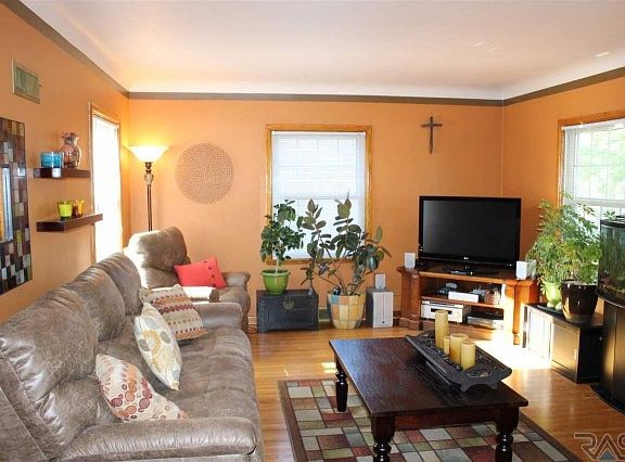 CUTE AS A BUGS EAR!! This charming 1.5 story home in a wonderful, centrally located Sioux Falls neighborhood is ready for you to move in! Beautiful hardwood floors and warm, inviting colors greet you as you walk in the door and you will love the open flow of the living room, formal dining, and kitchen. This home also features a remodeled kitchen with tile floors, newer cabinets, copper tin ceiling tiles and newer stainless steel appliances, newer windows, furnace, and maintenance free siding. There are 2 bedrooms on the main level and one HUGE bedroom on the upper level that would also make a great playroom or hobby area! The lower level has recently been finished off to give you a cozy and inviting family room in the basement. Don't forget about the HUGE WORKSHOP and spacious laundry room with shelves for folding/storage! Gun safe, washer/dryer/stay. Ample storage throughout! Come and see this lovely home today!