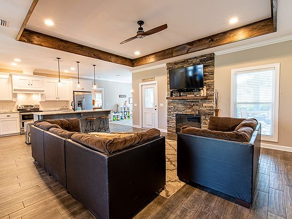 Beautiful home located in Oak Ridge Forest lake community! Open floor plan with wood tile flooring, fireplace, and wood trim ceiling in the living room. Wonderful kitchen with plenty of counter top space and stainless appliances- including double oven range. Large master suite featuring double vanities and massive tile shower with dual shower heads. Fourth bedroom has glass french doors that can be changed for privacy. Huge fenced yard with open space and community lake stocked with fish!