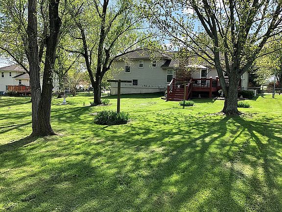 Split level home with beautiful hardwood floors on the lower level. Three bedrooms (12 x 13), (11 x 11), (10 x 11) and two baths. Dining room, family room with fireplace, living room and double pane windows throughout. Partially finished basement with lots of storage room. Climate controlled garage. Walk out to a newly remodeled deck on a treed fenced half acre lot.