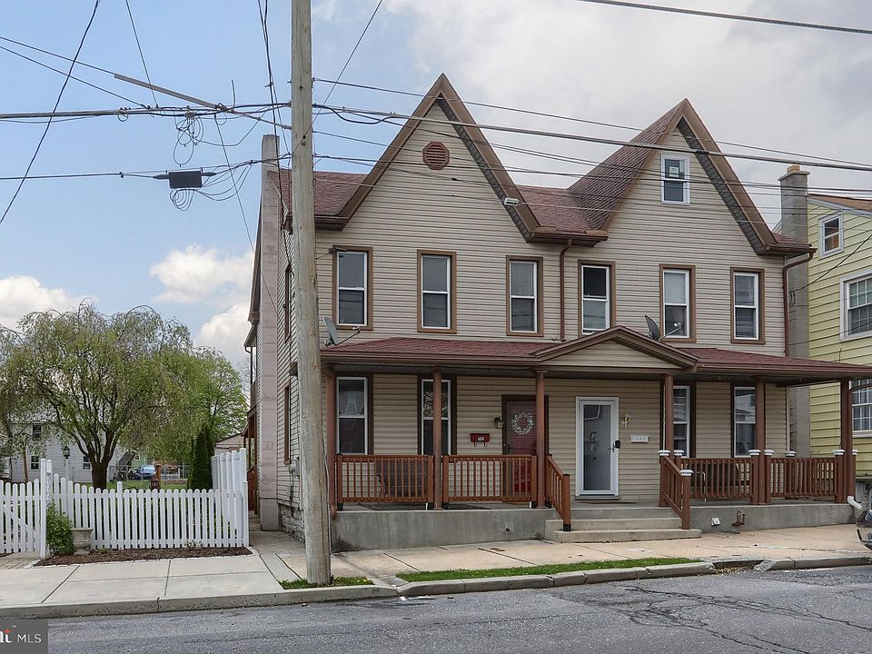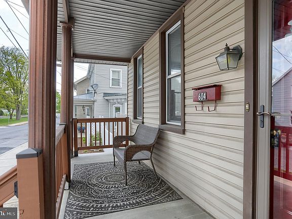 ****** OFFER RECEIVED ***** Seller has set an offer deadline of Tuesday , May 2 at 4:00pm. Offer presentation to follow. *******Sweet semi-detached in Myerstown Borough located 1 block south of the Myerstown pool & park. 604 Railroad offers spacious living areas and 3 hall entered bedrooms. Step through the front door and you’ll find 2 open rooms with ceiling fans and recent vinyl plank flooring (2023). Nice open flow between rooms. Lots of replacement windows provide welcome natural light. The kitchen is highlighted by granite countertops in beautiful light natural tones, classic white subway tile backsplash, and stainless appliances. The owner did a unique artistic treatment to the kitchen walls. Be sure to check it out. Off the kitchen….surprise, there’s a butlers pantry with built-in storage cabinetry and open shelving to display your pantry goods in pretty glass jars and containers. This little space could be a real gem. Can you see a future narrow coffee bar on the empty wall? Just off the kitchen you’ll find access to the charming rear covered patio. The owners installed railing, modern ceiling fan, shiplap wood ceiling over head with rich deep tones……and hung a string of Edison lights. Resting here, with a cool drink in hand, you are able to look out over your quaint private back yard. It’s calling for a few lilac, and knock out rose bushes, or a small raised herb box bed in the future. Great full sun exposure. Detached garage at the back of the lot. Back inside. The 2nd floor offers 3 hall entered bedrooms. The primary has access to 6 x 14 rear covered balcony. I envision hanging ferns, and comfortable outdoor chairs here…a place of rest and reflection after a good days work. The bath at the end of the hall has a new tub/shower (2023), vinyl flooring, pedestal sink, and medicine cabinet.