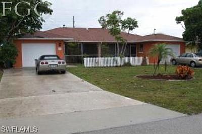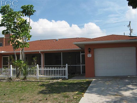 Cute red cottage with white picket fence, near heart of Cape Coral, left side (B). Close to shopping, bus, & park/beach. Very clean, great condition, includes washer, dryer, refrigerator, range, dishwasher & garbage disposal, spa bathtub, & attached garage. Tiled & screened front porch. Ready to move in by July 1st. Lawn care and water included. Agents please see comments.