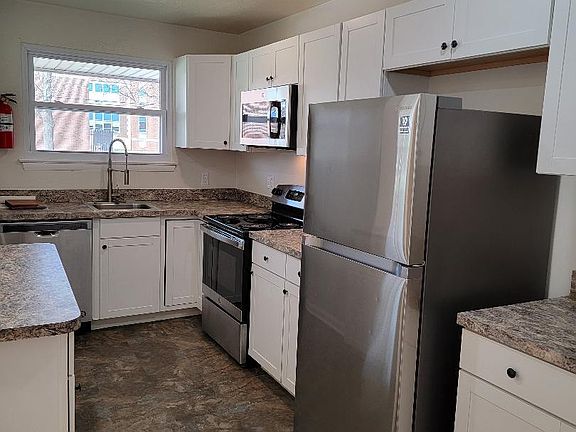 Completely renovated a year ago, to provide a modern look. Cabinets. Counter tops. Appliances. Windows. Bathroom are all one year old. Freshly painted. Floors freshly refinished. Has electric oven/range, gas heat. Appliances included: dishwasher, range/oven, microwave, refrigerator. Landlord pays water and sewers. Renter pays gas, electric, cable and phone. No smoking on premises No pets See lease for more details